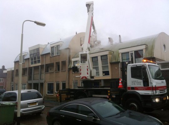 Met onze 32- meter hoogwerker en heet water hogedrukunit hebben we het kunststof dak gereinigd met heet water onder gepaste druk en een biologisch afbreekbaar reinigingsmiddel.